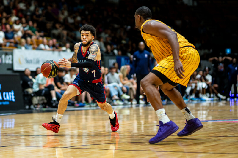 Alliance forward Kevin Osawe smashed home a powerful dunk to cap off the game, reaching the targeting score before yelling “we in!” to those lucky enough to have been courtside for the dominant statement game from the Montreal Alliance. At the final buzzer, the Alliance held a 103-83 lead over the Honey Badgers, largely from an incredible second half performance.