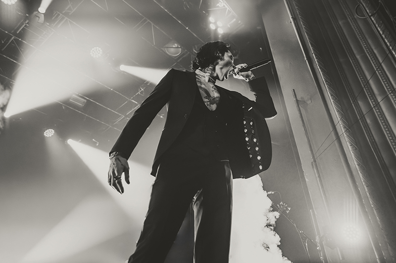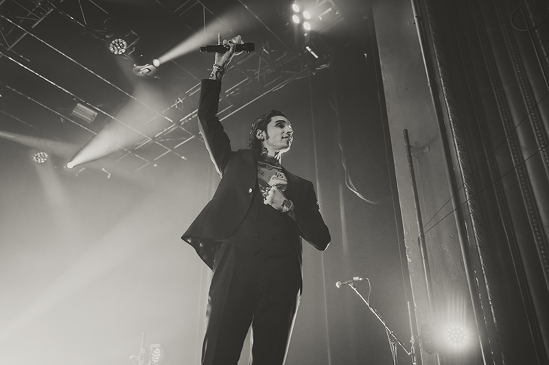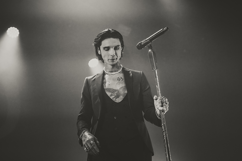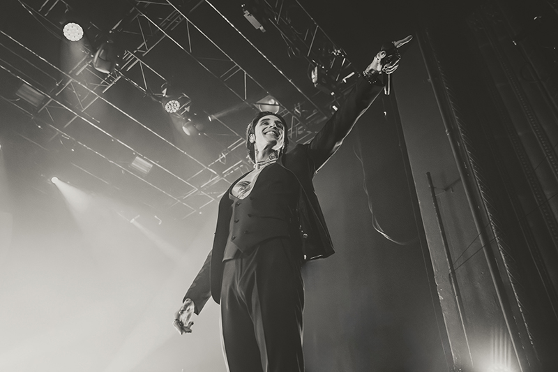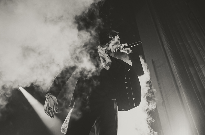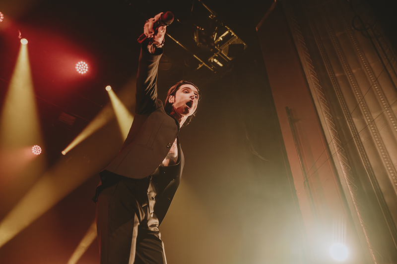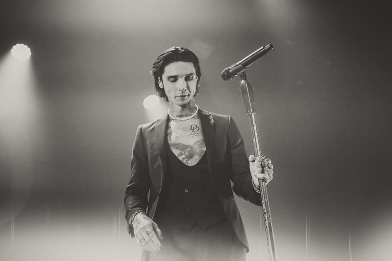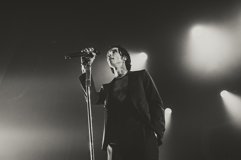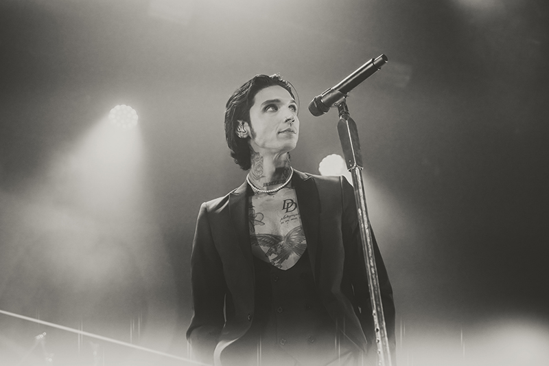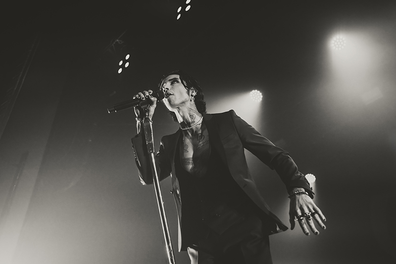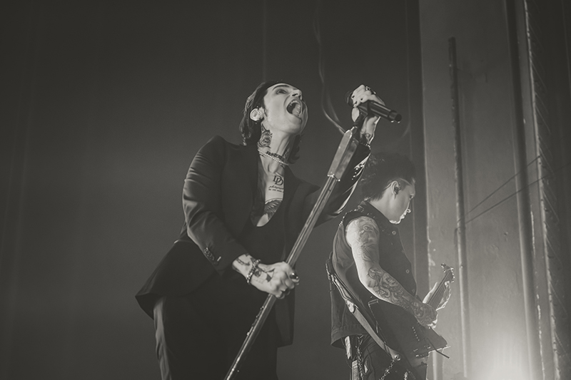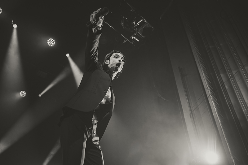 After another short break with some massive stage changes to allow room for the immense drum kit, benches for everyone to jump on, and lighting, the crowd pressed forward even more in anticipation. I felt like I was back in 2005 seeing HIM for the first time at Metropolis (now MTelus). While their sounds are different, it feels like Black Veil Brides is to this generation as HIM was to mine. The audience was filled with young women talking about how dreamy Biersack is and how much they resonate with the music. His current look even emulates VV’s quite a bit (almost like a younger brother). They both wore all black suits with their chests and tattoos exposed, and they’re known for being strong frontmen for their respective bands, their charisma, and devilishly handsome good looks.