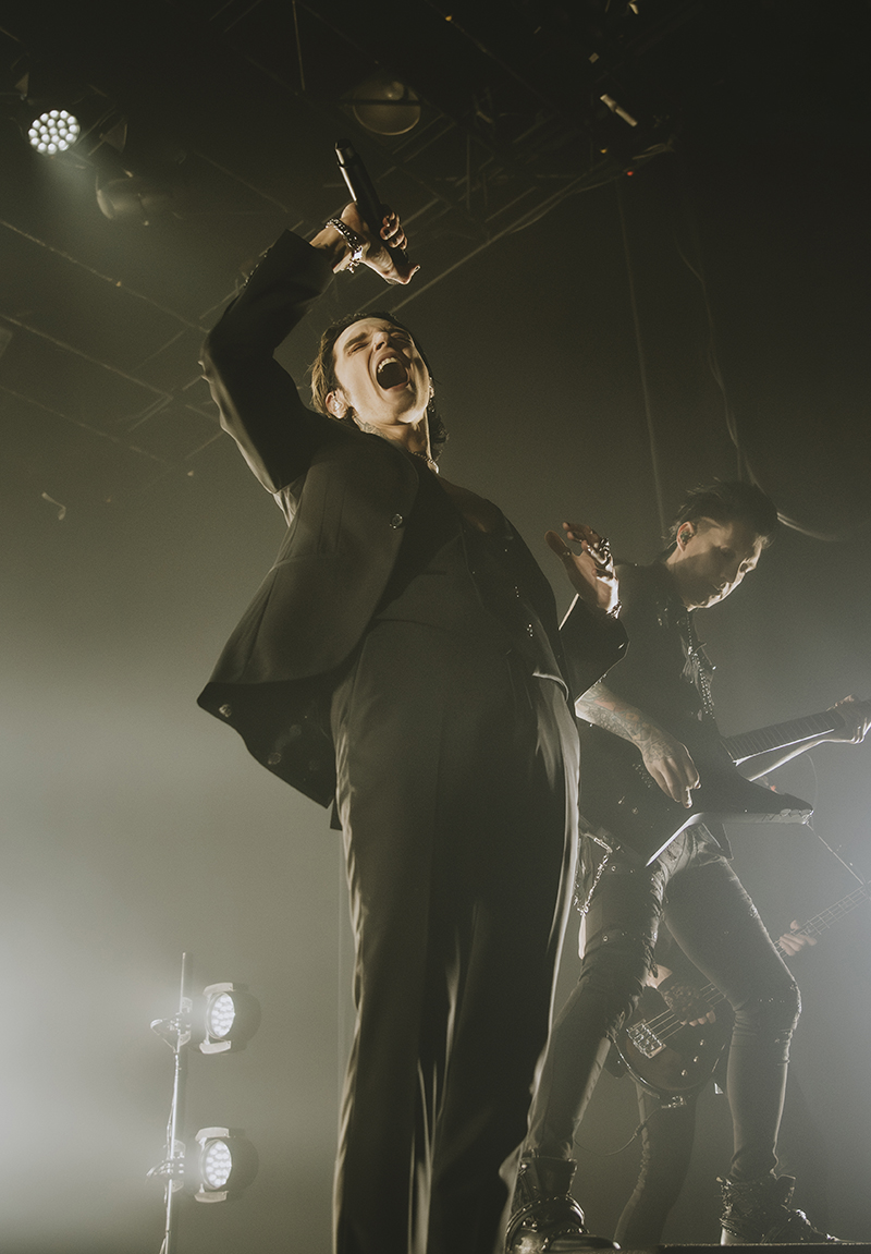 I had a plan for what I would say, but all that went out the window when I got in front of Andy Biersack. My brain defaulted to my love and knowledge of HIM, and that’s all I could talk about. I welcomed them to Canada and asked how it’s been so far, and while I was trying to engage everyone, only Biersack spoke. He said they had been there for four days and everything was great, and then I asked the band how it felt to be on tour with VV. Biersack said that VV changed the vibe of the tour and added a nice change of mood in between two heavier bands, which was also different from their previous Trinity of Terror tour where they played in Montreal in 2022.