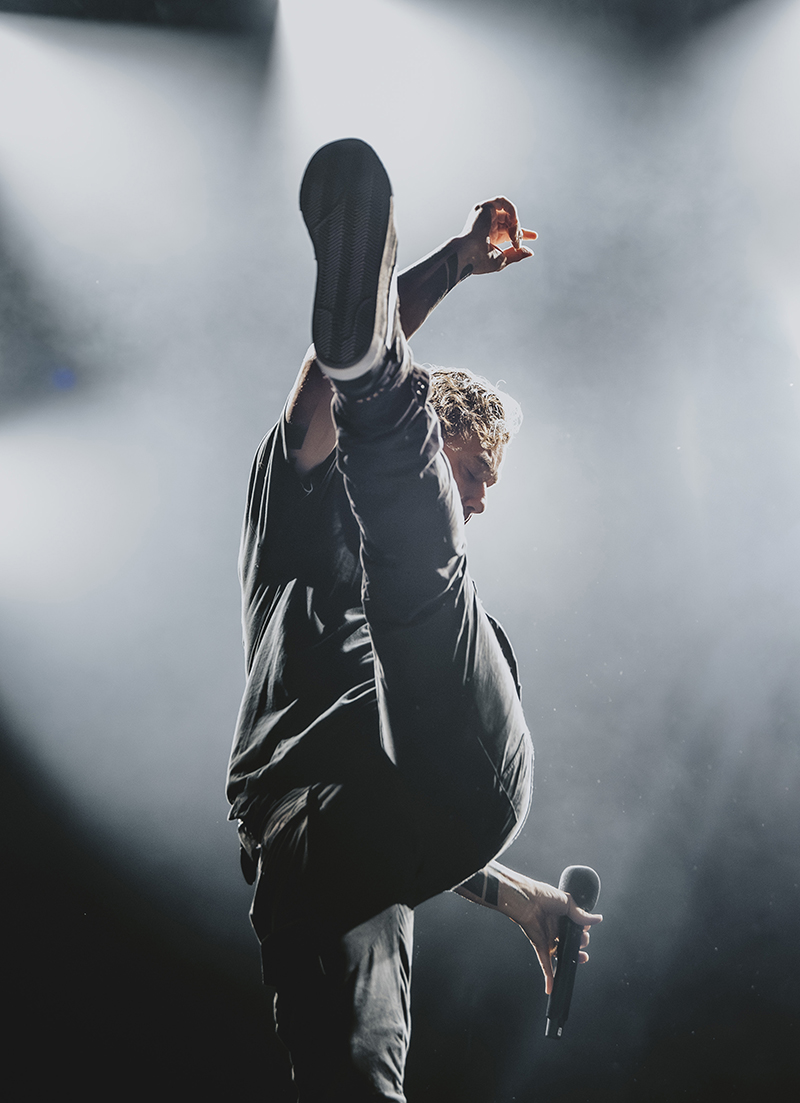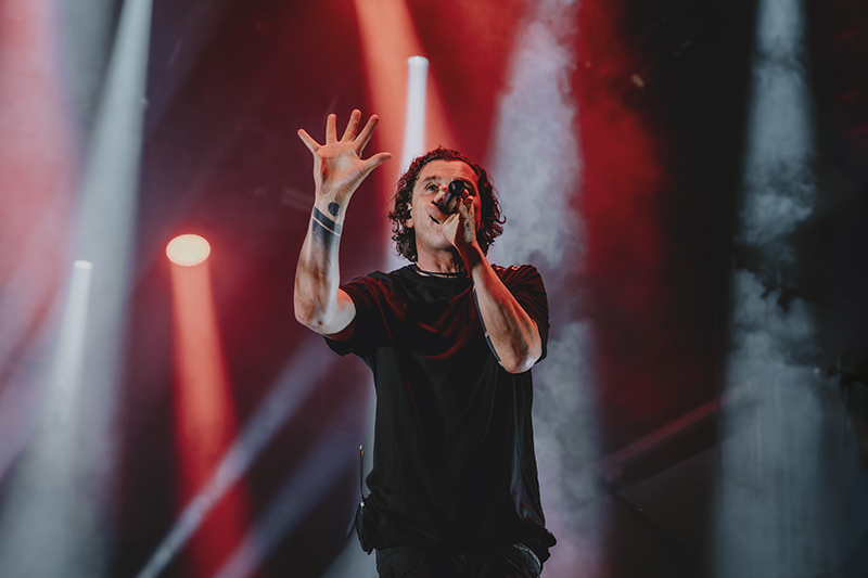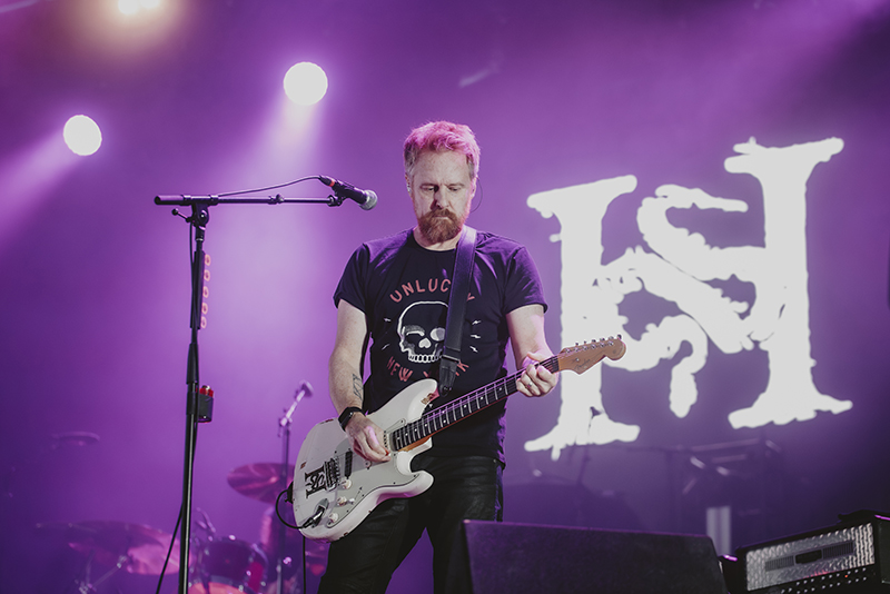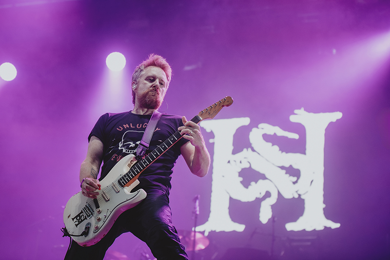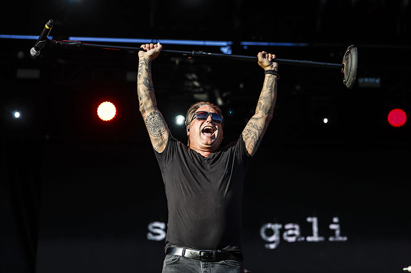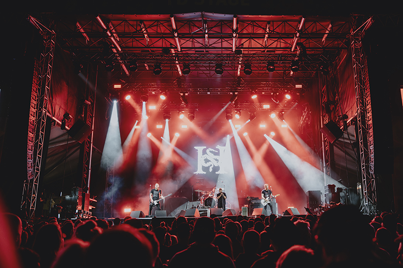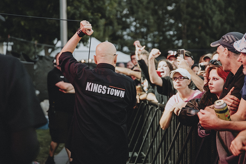 Headstones, a punk-inspired rock band from Kingston, followed and kept the heavy music going as singer Hugh Dillon almost immediately took off from the stage and ran into the crowd. It looked like he was on a leash as a crew member fed the cable and tried to keep it from getting tangled or pulled too hard. He sang with fans, took phones and videoed himself and the crowd, and got up in everyone’s faces—you could tell he loves what he does. It was definitely a rock show as people jumped around and crowd surfed, with Super Kyle Humphrey making an appearance as he surfed from the front row.