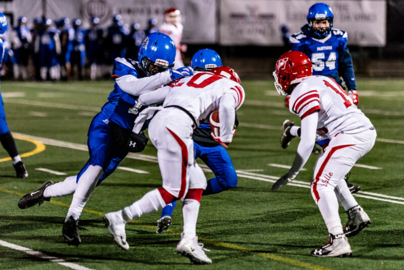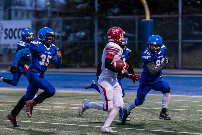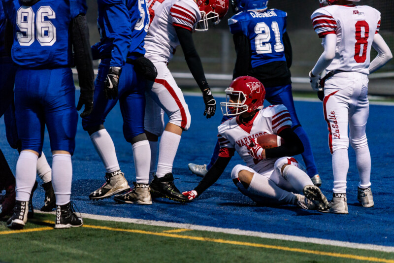 Lasalle started off the way they had the weekend before, leaping to an early touchdown and a lead. They quickly doubled their advantage and running over the Panthers, quite literally. At the half they lead by a whopping thirty two to three and had seemed certain to win and win big. But their third quarter mimicked the one from the Saint Leonard game and slowly Cumberland started to come back. The intensity grew and it seemed as if there was a flag on every play.
