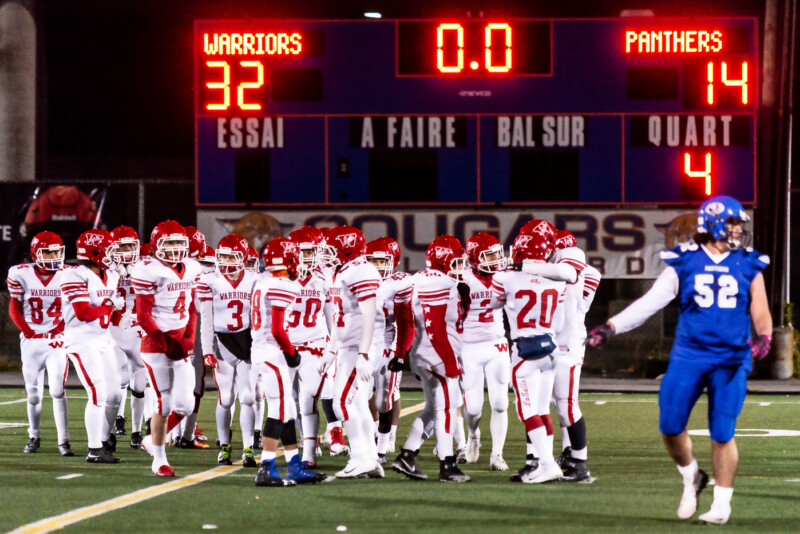 A week ago, the Warriors steamrolled the Saint Leonard Cougars in a match they dominated from the opening minutes. An early touchdown meant they lead and never once trailed in the match, although a slow start to the second half and an inspired exit from the Cougars made the contest closer than the Warriors might have liked. In the fourth quarter, they were back to their domineering display and went on to hoist the Cup D’Or above their heads.