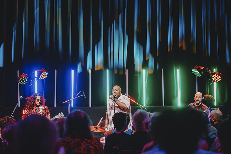 The River stage featured a variety of artists throughout the day, starting with The Texas Horns. They also played to a small but engaged crowd, with older folks dancing to the blues beats. The three-piece horn section has performed live with hundreds of artists at various festivals, including playing With Lindsay Ell a few days earlier and Matthew Chaffey after their own show. They dedicated “this show and all shows”, said tenor sax player Mark Kazanoff, to Bob Provick, one of the founders of Bluesfest and his best fishing buddy.