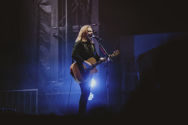 Once the issues were resolved they launched back into their set and covered both new and old material, with the audience singing and dancing along. The stage volume was cranked up for this show and everyone was into it, even the rain backed off to let them finish their set in peace.