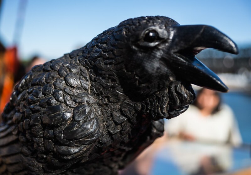 The ship itself is a stunning feat of craftsmanship and a true work of art. Much of it is hand crafted and carved. Built in the traditional ways of yore and a glorious sight for the eyes. A watchful pair of Raven’s – an extremely important aspect of Norse culture, keep watch over the navigation deck.