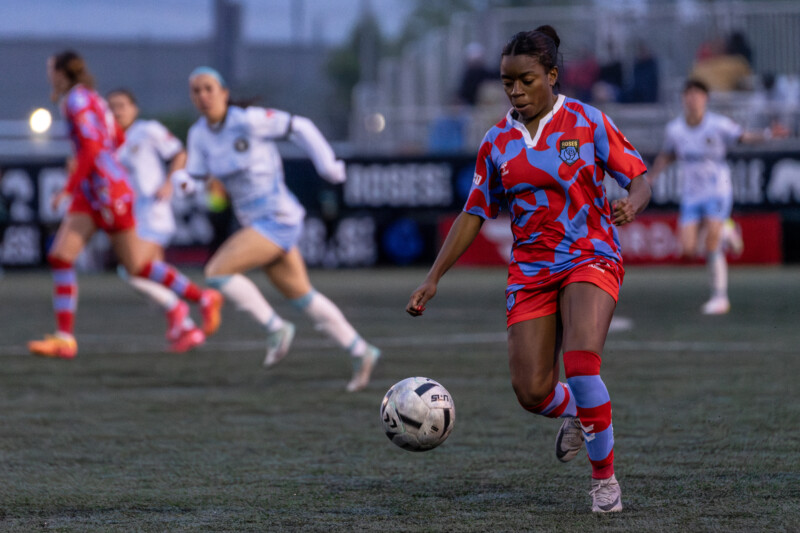 In the 35th minute, AFC Toronto broke the deadlock when Esther Okoronkwo curled a screaming shot into the back of the net from just outside the box. AFC Toronto’s pressure had paid off, as the Roses finally succumbed to the non-stop barrage that besieged them.