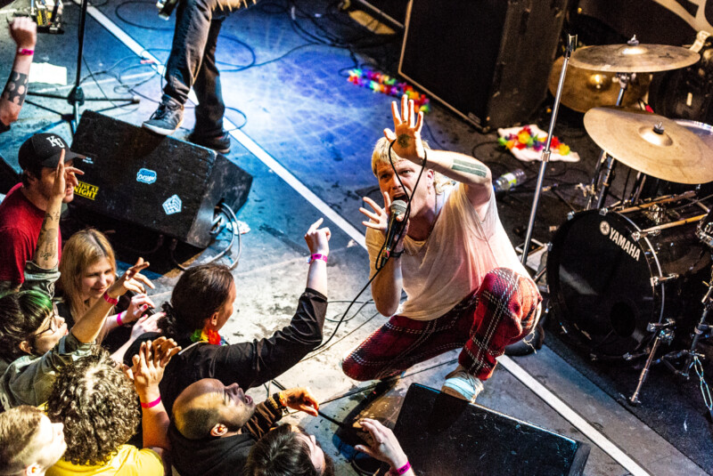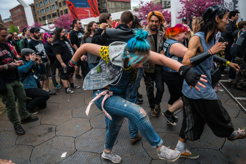 Even the Teenage Mutant Ninja Turtles showed up – and they brought pizza. No, seriously. Then the punks all did yoga together. Drank from leaking pineapples and played baseball. There were all these stand-up comedians on this terrasse we all loved. A bar called Katakombes that got shutdown thanks to gentrification and shitty landlords. Stupid rich people. The music started at noon , ended at three o’clock in the morning, then they served you breakfast. I’m serious.