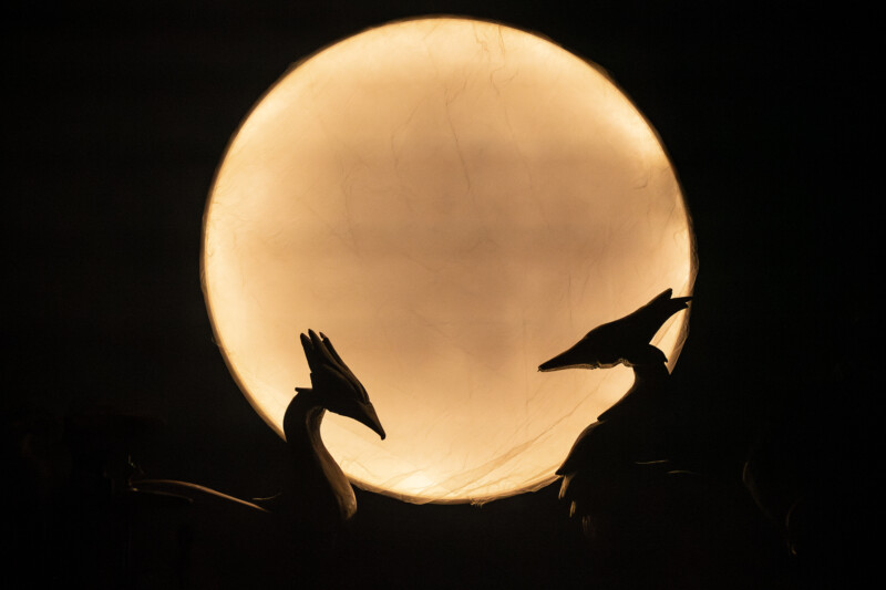 The stage at the Beanfield, formerly the Corona Theatre (and still the Corona in my heart) had been transformed to look as I have never seen it before. This is a building that’s more than a century old we’re talking about here. It had been transformed as only our cousins from France could do – with panache. So clean. Minimalist. Soft white carpets (I touched them trust me, soft!) covered the aged hardwood stage, while a low black riser sat at the back of the room with the drummer Jean Deflandre to the left, two birds, pelicans I think, and a light made to resemble the moon sat in the middle, with bassist Indria Saray on the right.