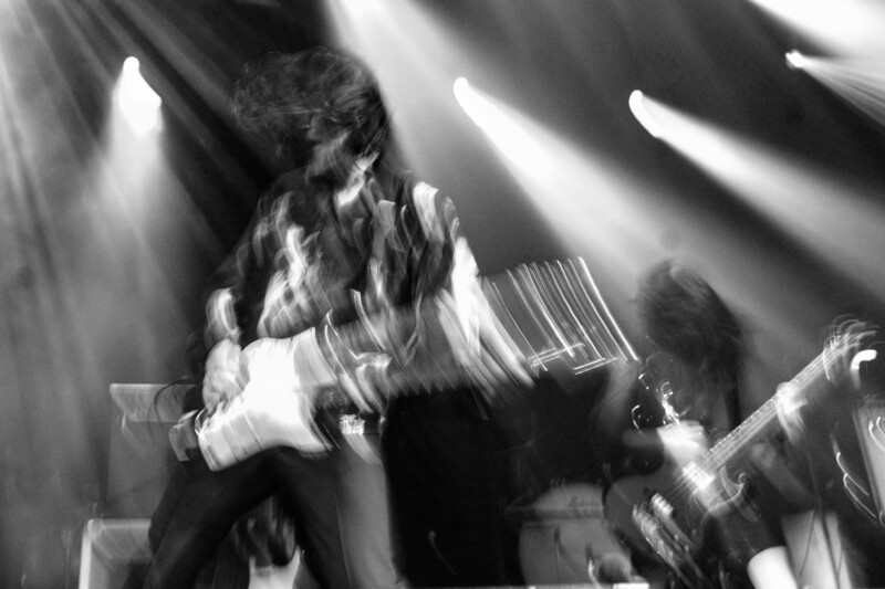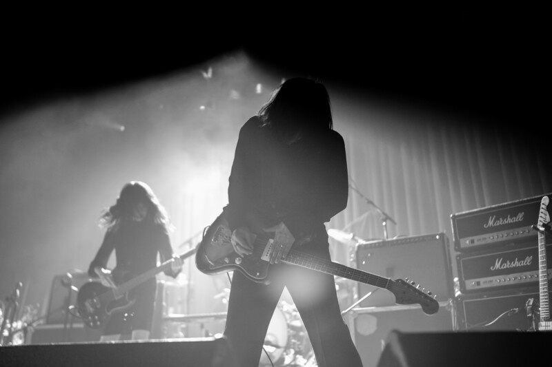 The quartet of Takaakira “Taka” Goto on guitar, Hideki “Yoda” Suematsu on rhythm guitar, Tamaki Kunishi on bass and Dahm Majuri Cipolla, who I could hear but couldn’t see, hidden in the darkness playing the drums. Mono played their set in virtual darkness, where a strobe light occasionally broke through the pitch black to assure us there there were in fact musicians on stage.