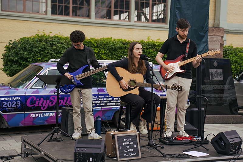 Sophie Ash, a local musician from Ottawa, kicked off the evening of folk music as the first free concert of the festival with TD Plays the Plaza. Her soft and comforting music in both French and English welcomed guests outside the festival grounds at 5 pm when the main gates opened. A dedicated group of a few dozen fans sang along with her and patrons of LOCAL Public Eatery Landsdowne enjoyed her soothing voice as they had dinner.