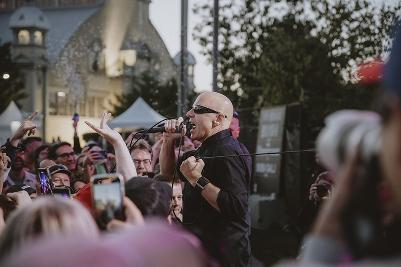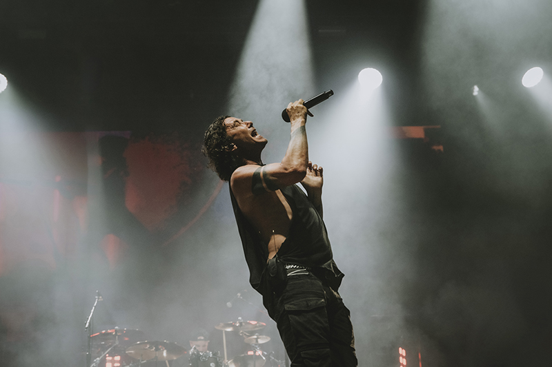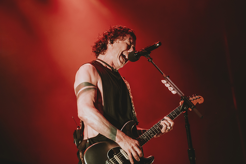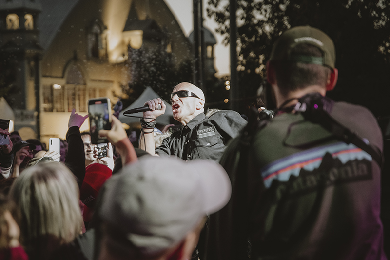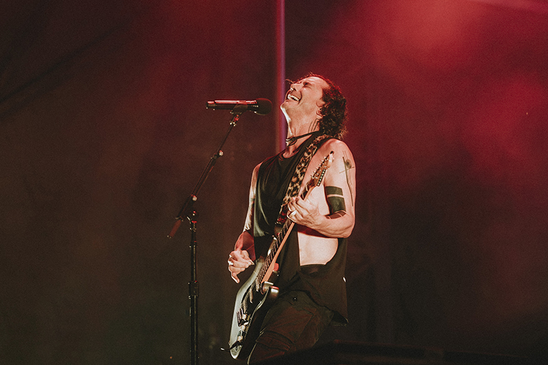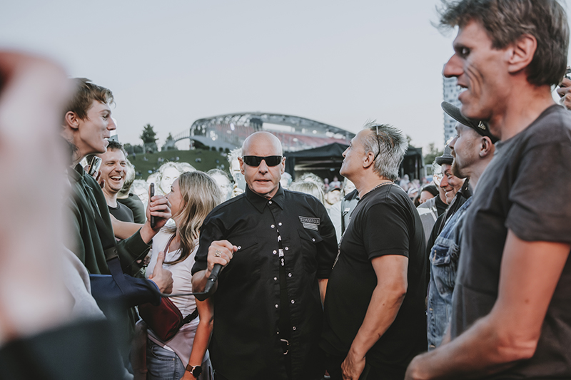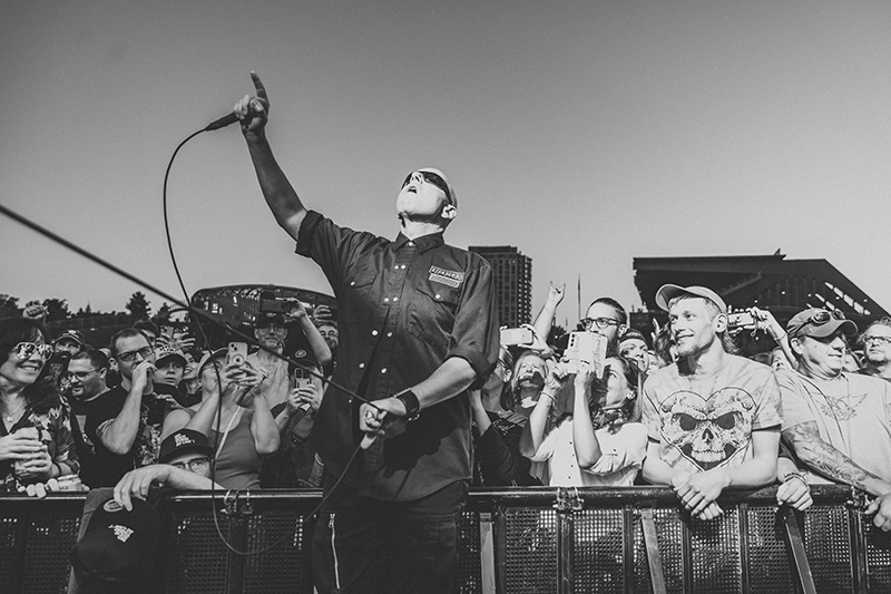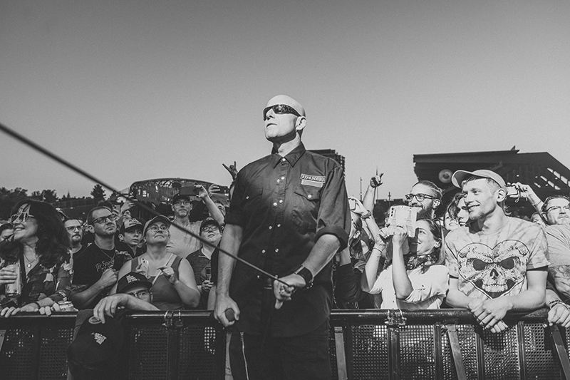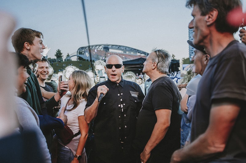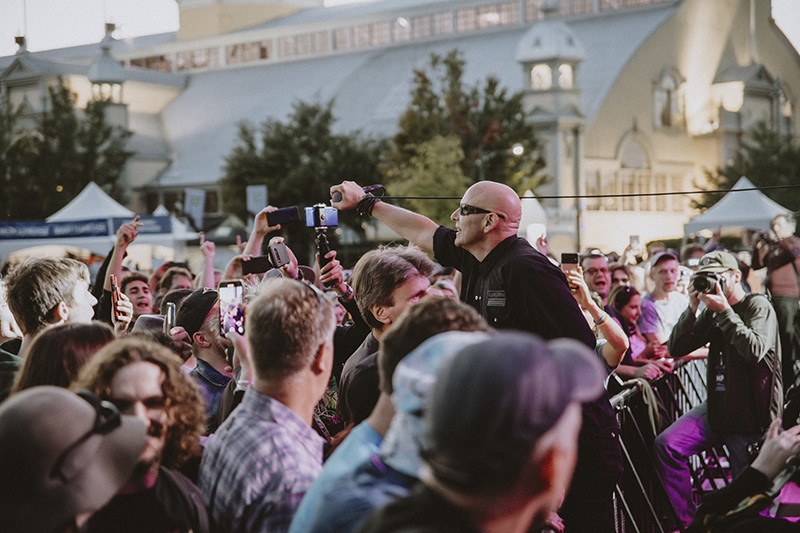 Headstones, a punk-inspired rock band from Kingston, followed and kept the heavy music going as singer Hugh Dillon almost immediately took off from the stage and ran into the crowd. It looked like he was on a leash as a crew member fed the cable and tried to keep it from getting tangled or pulled too hard. He sang with fans, took phones and videoed himself and the crowd, and got up in everyone’s faces—you could tell he loves what he does. It was definitely a rock show as people jumped around and crowd surfed, with Super Kyle Humphrey making an appearance as he surfed from the front row.