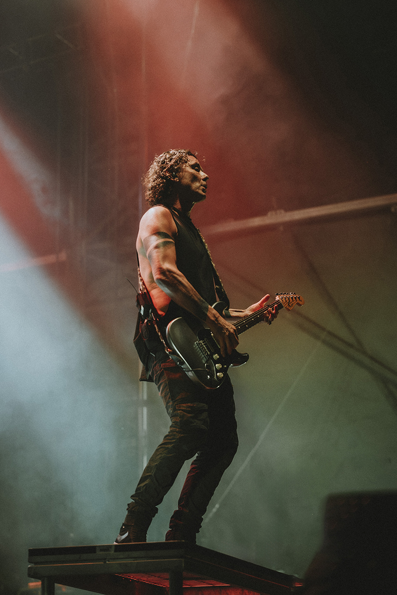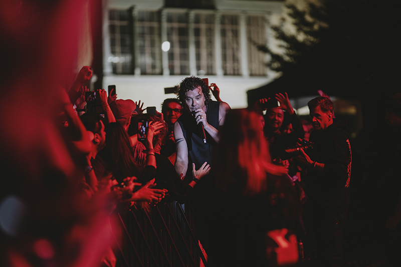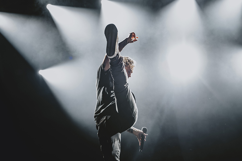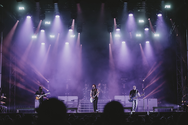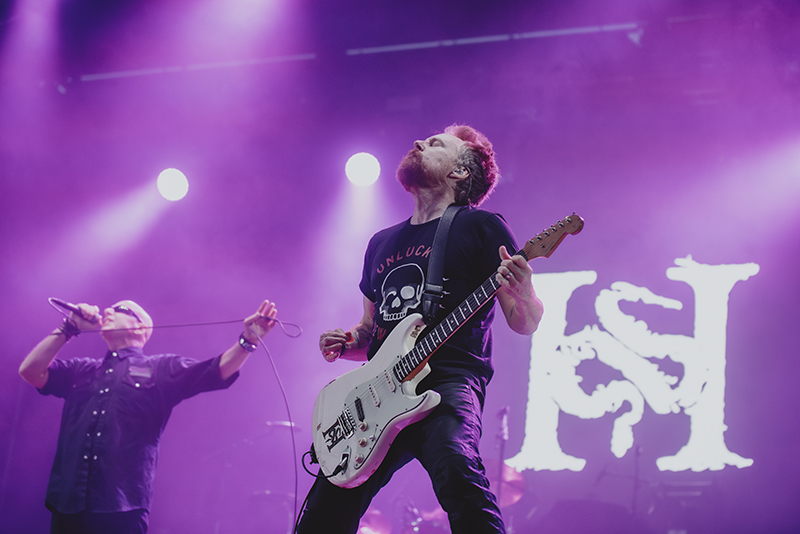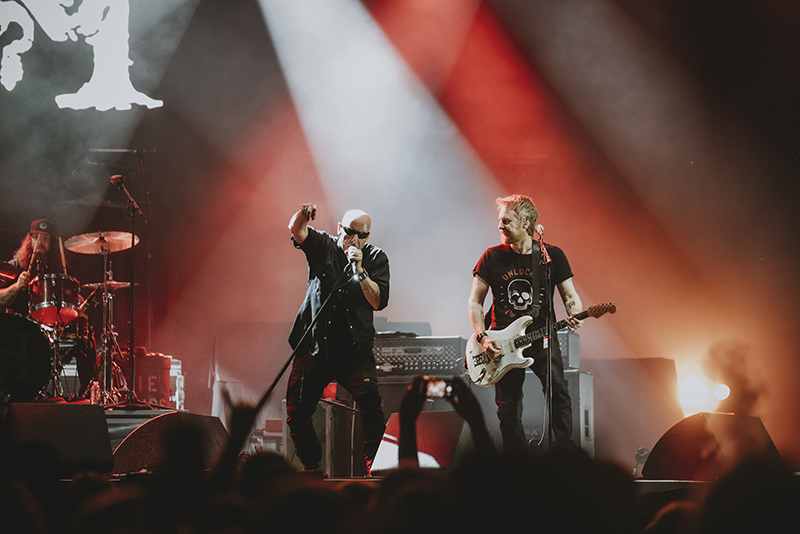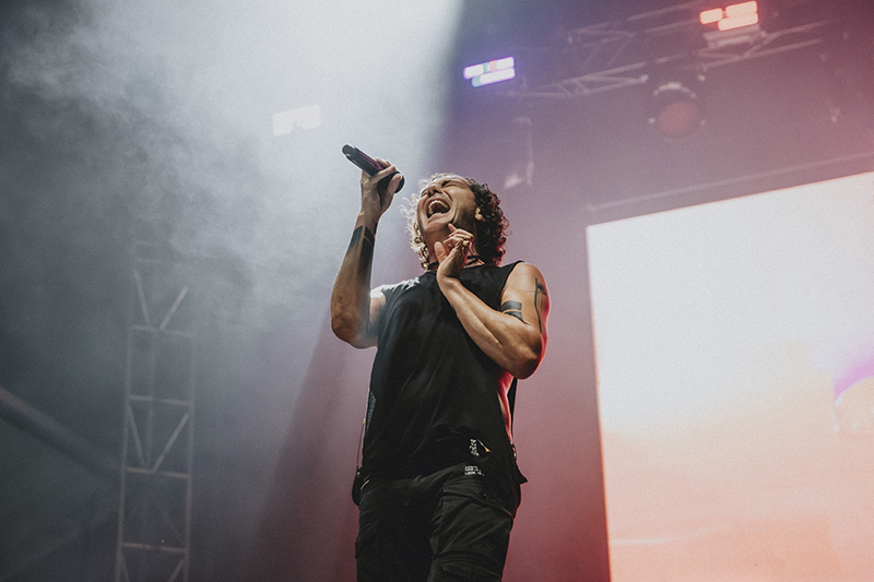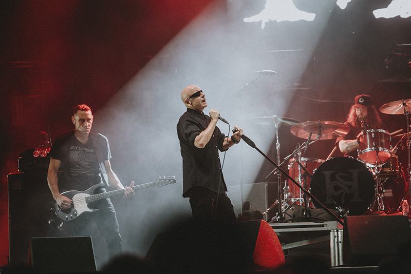 Headstones, a punk-inspired rock band from Kingston, followed and kept the heavy music going as singer Hugh Dillon almost immediately took off from the stage and ran into the crowd. It looked like he was on a leash as a crew member fed the cable and tried to keep it from getting tangled or pulled too hard. He sang with fans, took phones and videoed himself and the crowd, and got up in everyone’s faces—you could tell he loves what he does. It was definitely a rock show as people jumped around and crowd surfed, with Super Kyle Humphrey making an appearance as he surfed from the front row.
