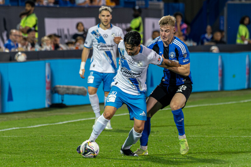 Despite being down a man, and the play heavily in Club Puebla’s favor, Prince Owusu opening the scoring for Montreal, notching his eleventh goal in his last eleven matches. The goal came off great vision from Cayden Clark, who stole a wayward Club Peubla pass and brought it down the right side of the field, where instead of putting a shot at goal, he instead sent a blisteringly hard pass across the box and just in reach to meet the outstretched foot of a sliding Owusu.