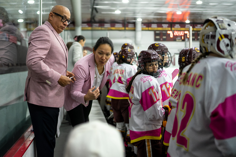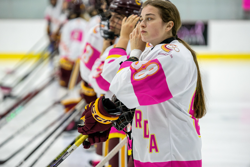 The Bishop’s Gaiters came to Montreal to take on the Concordia Stingers at Ed Meager arena in the first part of a home and away contest, which also served as the Stingers Pink in the Rink game, which raises funds through a bake sale an auction to create awareness and support for Breast Cancer research.