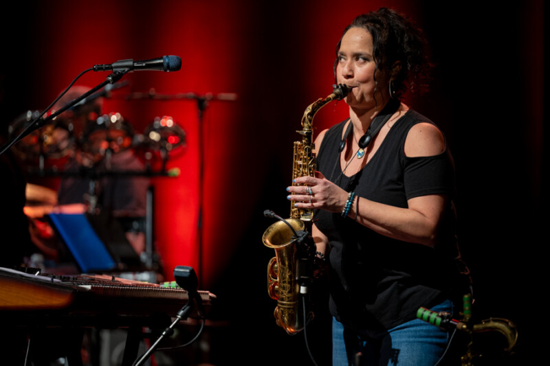 And with only six musicians on stage, there was a lot of double-dipping. Scheila Gonzalez primarily played tenor and baritone sax, but also flute, keyboards and percussion. Guitarist Zak Tabori also doubled on drums and percussion. And they all sing, and sometimes even speak with Frank’s unique infections. It all feels like a genuine celebration of both Frank’s music and his character, and it never seems forced. And yet all of these musicians’ individual personalities shine through. It’s a delicate balance, and they somehow achieve it.