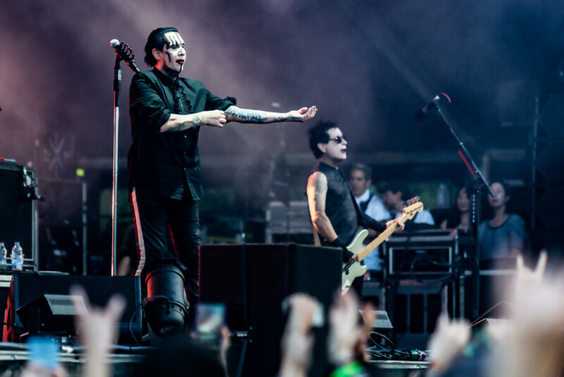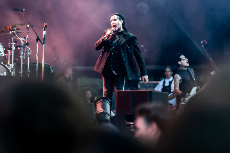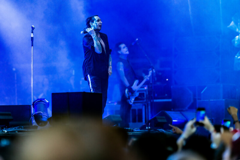 The aforementioned master of shock rock, Marilyn Manson did take the stage to the relief of many. His appearance was thrown into question following his last minute cancellation of his Toronto show the night prior. Showing up a good ten minutes late didn’t help the rumor mill. As mutterings from the gathering ran wild with all manner of speculations. Alas came the man in question, although perhaps the effects of his flu medication made him stumble and seem a tad lost at times. We’ll stick to calling it flu medication.