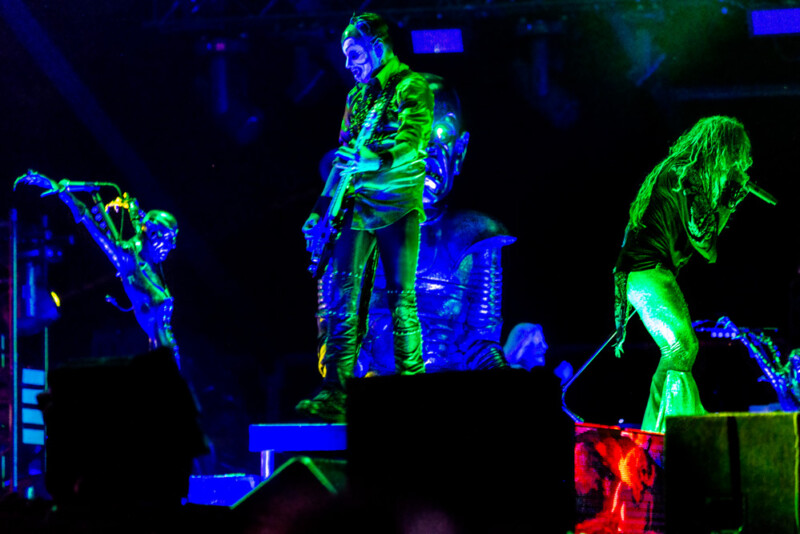Rob Zombie was next, playing a psychedelic neon set to the biggest crowd of the first night. By then, the rain clouds have all but departed. The cool, fresh air, was now breathing in relief. Somehow, Zombie and company had found a way to bring a night club’s black lights outside.
