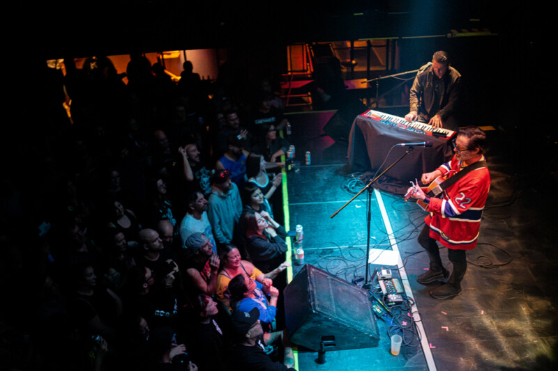 midway through his set, somebody from the audience handed Joey Cape a Montreal Canadiens jersey, which endorsed the number twenty-two of Habs star forward Cole Caufield on its back. Hesitantly, Cape pulled on the sacred jersey, sacre flanelle, which suited him fantastically. “What will the rest of Quebec think?” said Cape, pondering for a moment he said “Wait, they don’t have any other hockey teams in Quebec, do they?” which earned him a raucous cheer.