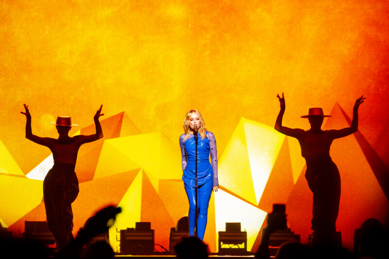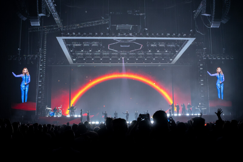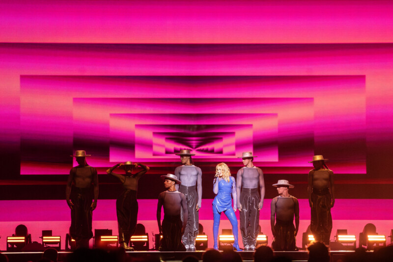 The Bell Centre was transformed into a wild nineties dance spectacular as Kylie Minogue rolled in on her pop-tastic party train – her first visit to Montreal in fourteen years. Something she immediately spoke up about and apologized for. All is well; you’re here now.