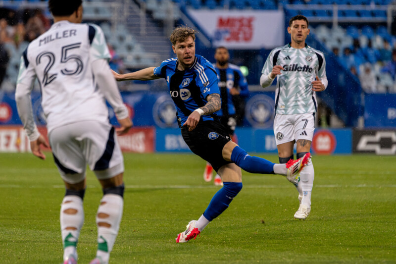 One again, the rain came cascading down about the grounds of Stade Saputo, soaking those that had turned up to the skin – even through their flimsy rain ponchos. Judging by how the players on the field were sliding about, struggling to find traction on the slick grass, they were having as good of a time of those in the stands were. It has been an unseasonably wet May for Montreal, which certainly hasn’t helped matters for the struggle squad.