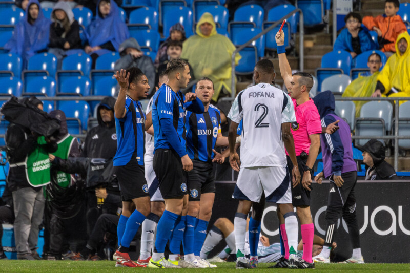 In total, CF Montreal were handed five cards during the match – four yellows and a straight red, which is a combination of frustration, poor weather, and poor refereeing – it needs saying. A lot of referee Michael Venne’s calls where questionable, to keep it mild.