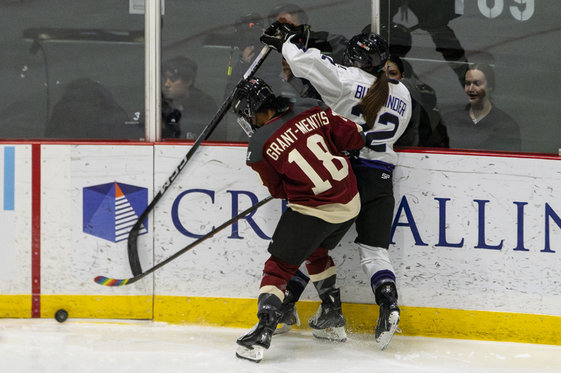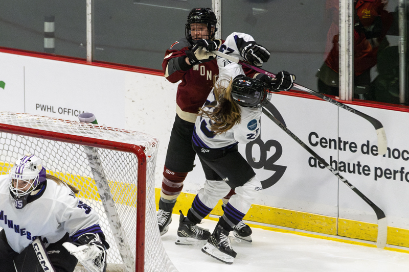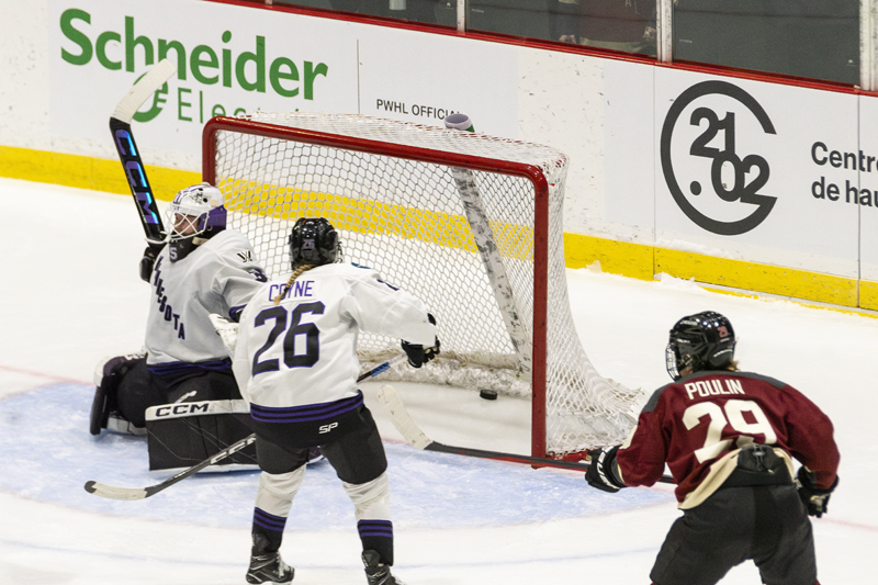 The momentum of the game began to swing in Minnesota’s favor in the second period. Montreal’s Mikyla Grant-Mentis was penalized twice, and Minnesota’s Grace Zumwinkle scored on their second power play to get themselves within a goal. It was to be a night where special teams played a massive role in the outcome of the match. Kelly Pannek deflected a shot from Sophie Jaques that beat Elaine Chuli to even the score.