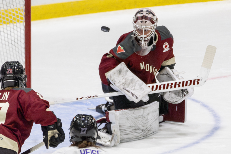 A minute and a half later, Brooke Bryant found herself starring down at a loose puck that she promptly shoveled into the back of the net, giving Minnesota their third goal of the period and the lead. It was her first goal of the season. That lead held strong until Montreal head coach Kori Cheverie pulled the goalie with 2:49 left in the game. A risky decision that paid dividends.