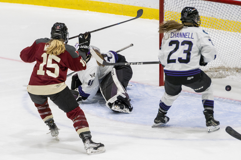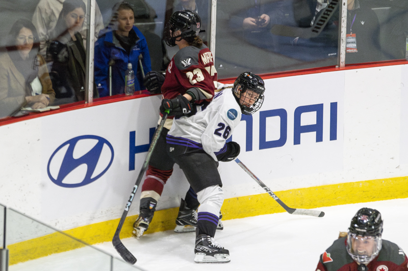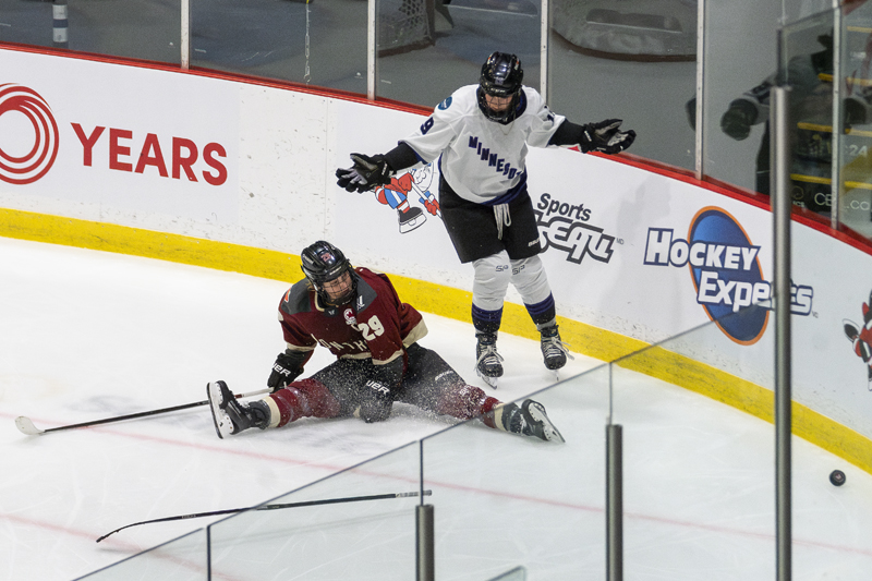 Roughly twenty seconds later, Stacey fired a rocket of a shot into the back of the net to tie the game at three goals a piece. Again, special teams would come into play as Minnesota’s Maggie Flaherty took an untimely hooking penalty that ultimately cost them the game.