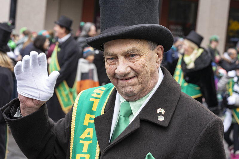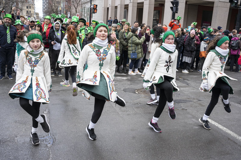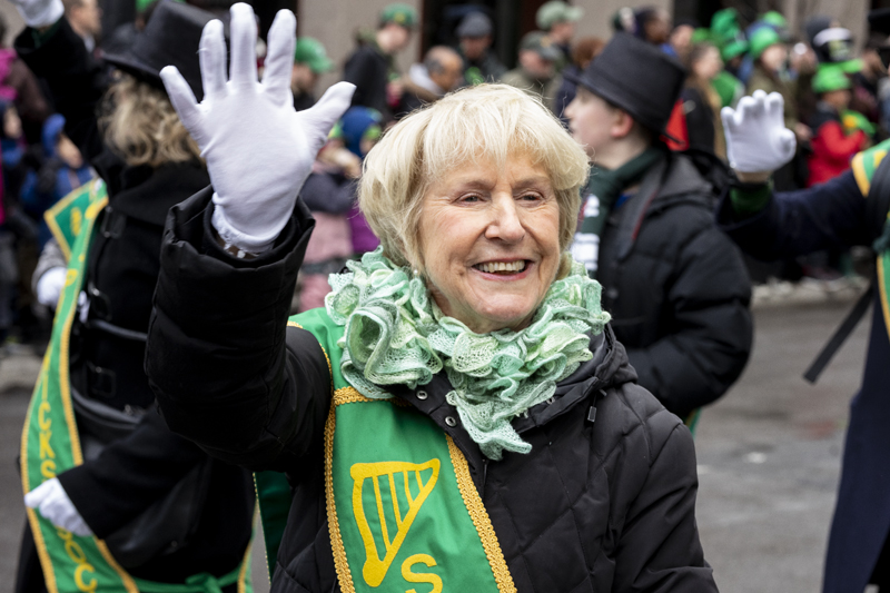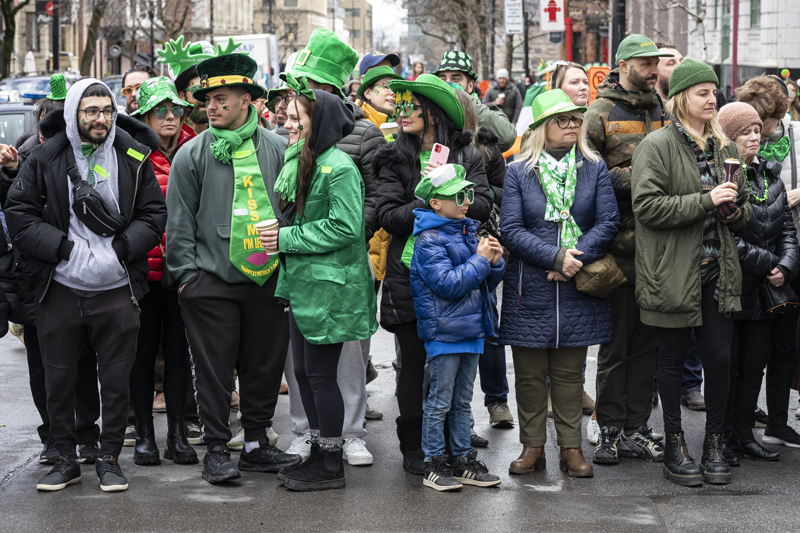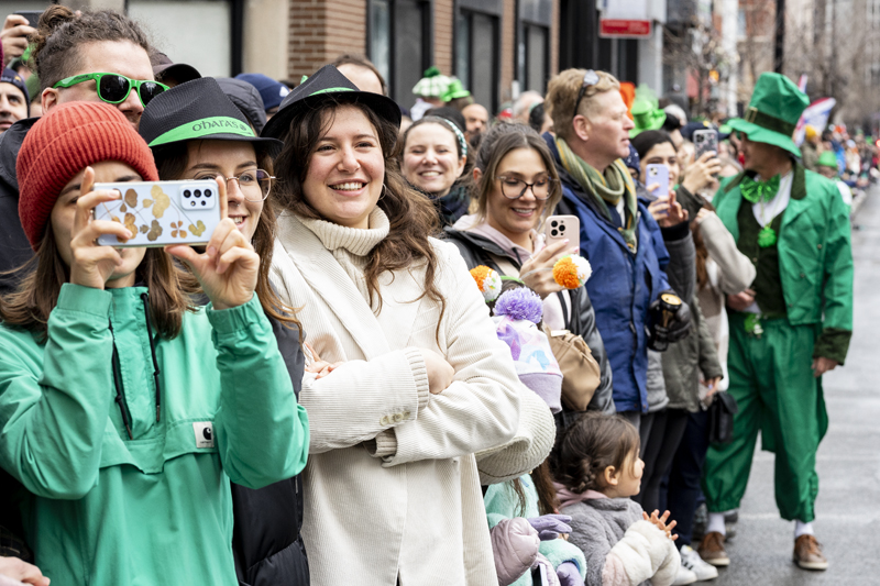 Any threat of rain had washed away by the time noon rolled around, and there were even moments of sunshine as Spring hinted at its most welcomed return. While the skies may have been grey, the streets shone brightly, awash in wave after wave of green-clad pedestrians who turned out for the event.